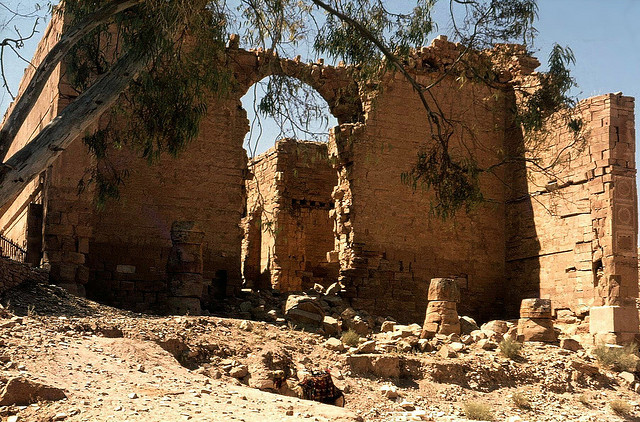 of yellow sandstone. It has been extensively restored. Dushara was the